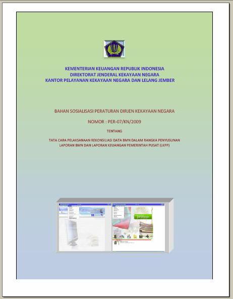 KPKNL Jember berencana mengadakan kegiatan sosialisasi Peraturan Direktur Jenderal Kekayaan Negara Nomor : PER-07/KN/2009 tentang Tata Cara Pelaksanaan Rekonsiliasi Data BMN Dalam Rangka Penyusunan Laporan BMN dan LKPP.