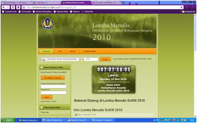 Sehubungan dengan kegiatan yang diadakan oleh Kantor Pusat DJKN yaitu : Lomba Menulis DJKN 2010, panitia lomba juga memberi kesempatan untuk ikut berpartisipasi pada seluruh pegawai Direktorat Jenderal Kekayaan Negara untuk menentukan tulisan favorit dengan cara menjadi voters. Voters juga akan mendapatkan doorprize dari panitia, bagi voters yang beruntung.