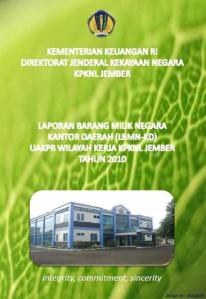 Setelah melalui proses yang panjang, dimulai dari pelaksanaan pemutakhiran dan rekonsiliasi data barang milik negara (BMN), dari tgl. 3 s.d. 17 Januari 2011, KPKNL Jember menyelesaikan Laporan Barang Milik Negara Kantor Daerah (LBMN-KD) Tahun 2010 yang menjadi amanat dari Peraturan Menteri Keuangan Nomor 120/PMK.06/2007 tentang Penatausahaan BMN.