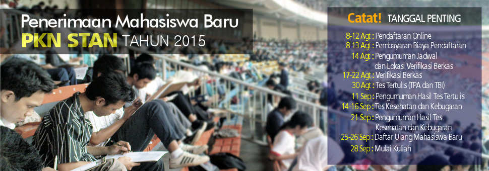 Kabar gembira bagi orang tua yang akan mendaftarkan putra/putrinya di Politeknik Keuangan Negara STAN, berdasarkan informasi dari web : www.stan.ac.id, Tahun 2015 ini akan segera melaksanakan Penerimaan Mahasiswa Baru. Berikut pengumuman pendaftaran STAN 2015 :